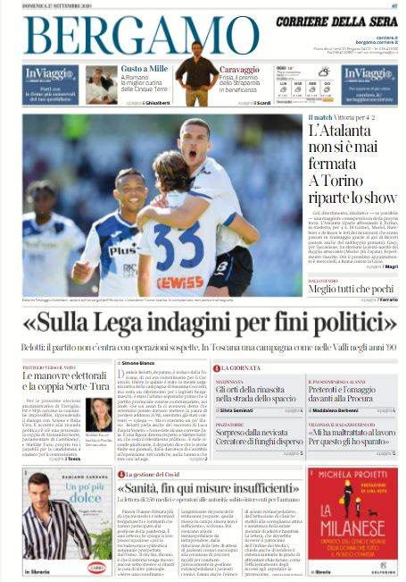 Andata sotto contro il Torino, l'Atalanta è stata brava a ribaltare il risultato e conquistare i primi tre punti al debutto in Serie A di questa stagione. Il Corriere di Bergamo, dopo il 4-2 contro i granata, tesse le lodi della formazione di Gasperini con un titolo in prima pagina: "L'Atalanta non si è mai fermata. A Torino riparte lo show".