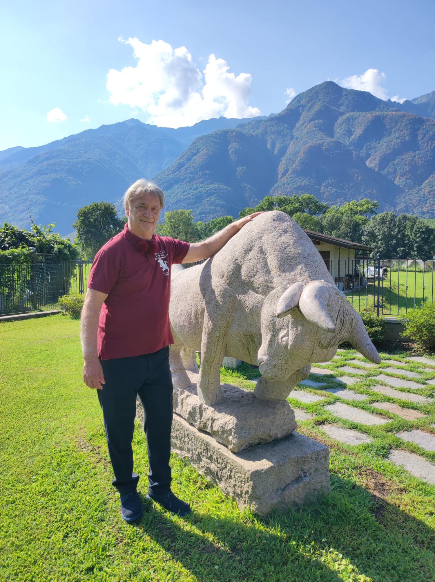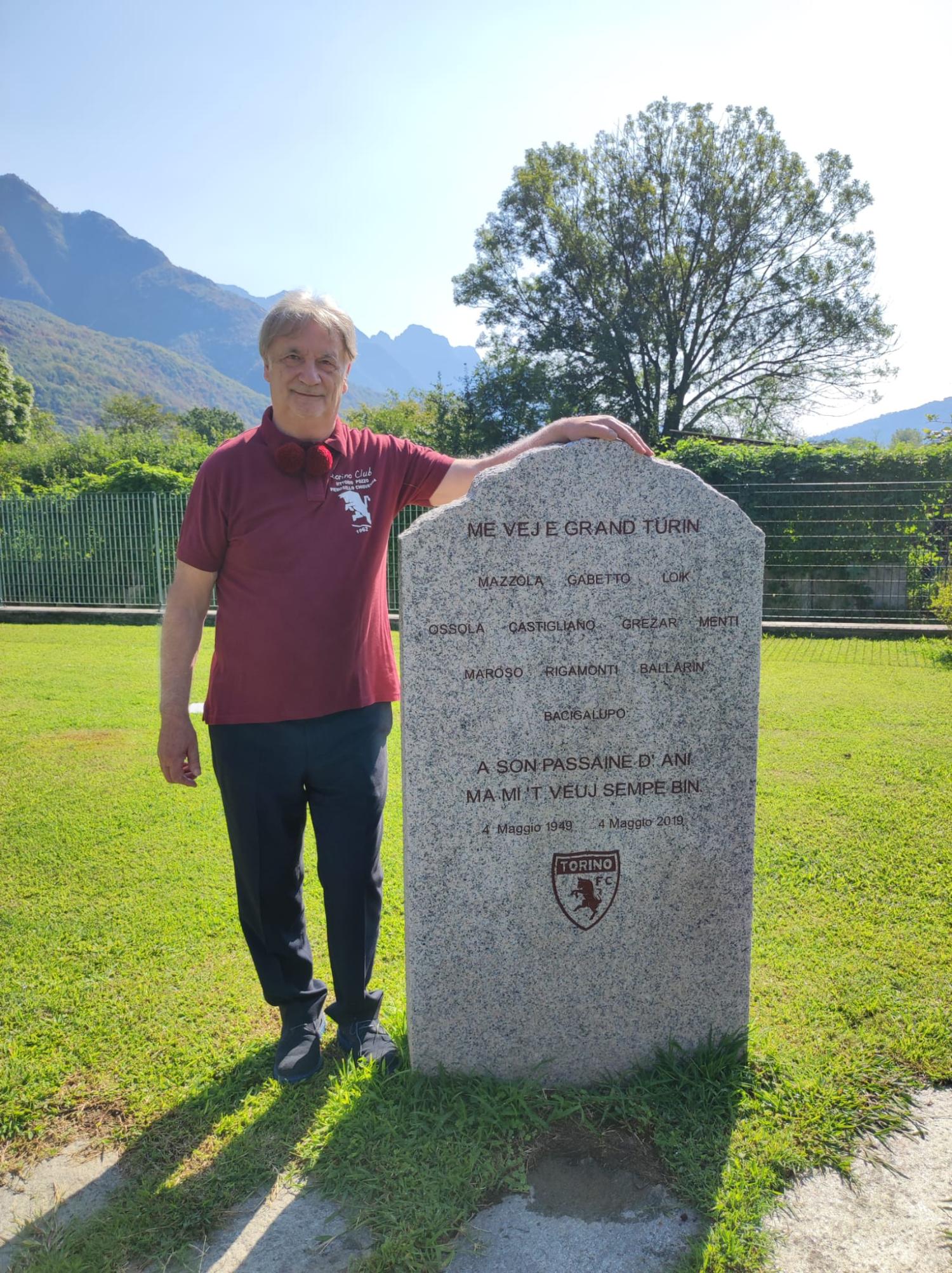 “Nel 2019 ricorrevano i 70 anni della tragedia di Superga e ho preso una scultura raffigurante un toro e fatto fare una lapide con incisa la formazione del Grande Torino corredata dalla frase “A son passaine d’ani ma mi ‘t veuj sempre bin”, parole tratte dalla poesia di Giovanni Arpino. In un negozio a Fondo Toce ho visto esposta la scultura in granito di Baveno di un toro e passandovi davanti in macchina la osservavo e un giorno mi sono fermato e ho chiesto all’artigiano se era in vendita, ma lui mi disse di no. Dopo qualche settimana sono tornato e gli ho chiesto di nuovo se mi vendeva la scultura raffigurante il Toro e ho visto che iniziava a tentennare e così ho continuato a fargli il filo fino a quando vedendo la mia grande passione granata ha ceduto. A cose fatte l’ho detto a mia moglie e lei è stata bravissima perché, pur avendo speso dodicimila mila euro, non mi ha detto nulla e ha capito la mia passione e per questo la ringrazio, come anche le mie figlie. Poche settimane dopo all’artigiano che mi aveva venduto la scultura del toro è venuta l’idea di vendermi una lapide, anch’essa in granito, con incisi i nomi dei giocatori del Grande Torino e io ci ho messo poco ad accettare e così ho preso anche la lapide, pagandola mille euro, e l’ho messa in giardino vicino alla statua del toro completando così la zona granata. Sono molto orgoglioso di questo. A ottobre dell’anno scorso in occasione della cena del club è venuto Zaccarelli e ho avuto l’onore di portarlo a casa mia e di fare con lui una foto nell’angolo del giardino dedicato al Toro. A causa del Covid non sono ancora riuscito ad organizzare un evento a casa mia, ma mi piacerebbe invitare gli amici granata e anche tutti quelli sportivi che non lo sono per inaugurare la statua e la lapide. Sono anche in contatto con Fossati, che faceva parte con Vieri, Poletti, Ferrini e Moschino della squadra che da ragazzo negli anni fine ‘60 e ‘70 seguivo e che ha vinto due volte la Coppa Italia, lo scudetto e tanti derby, quando a Natalino ho raccontato di aver preso le due sculture e gli ho detto quanto avevo speso mi ha detto che sono matto, ma la mia passione è così grande”.