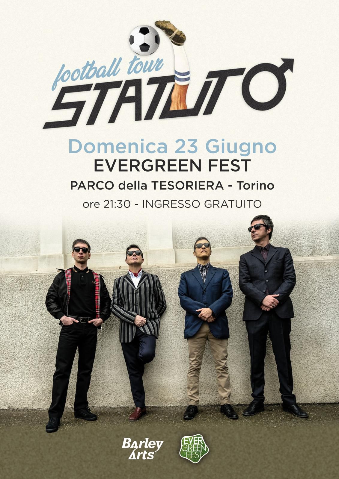 Così dopo i sold out in tutte le date del tour-club, la band torna sul palco con lo Statuto Football Tour, una delle tappe è l’Evergreen Fest, un vero e proprio spettacolo, dove oltre all’esecuzione dei brani del nuovo disco, si aggiungono anche i brani più famosi del loro repertorio come “Abbiamo vinto il Festival di Sanremo”, “Qui non c’è il mare”, “Piera” e “Ragazzo ultrà”. E per la gioia dei tifosi del Toro non possono mancare anche “Grande” e “Facci un gol”. Tra i ritmi ska e la melodia del soul, la band dà nuova vita a quei motivi storici canticchiati un po' da tutti, che si ami il calcio oppure no.