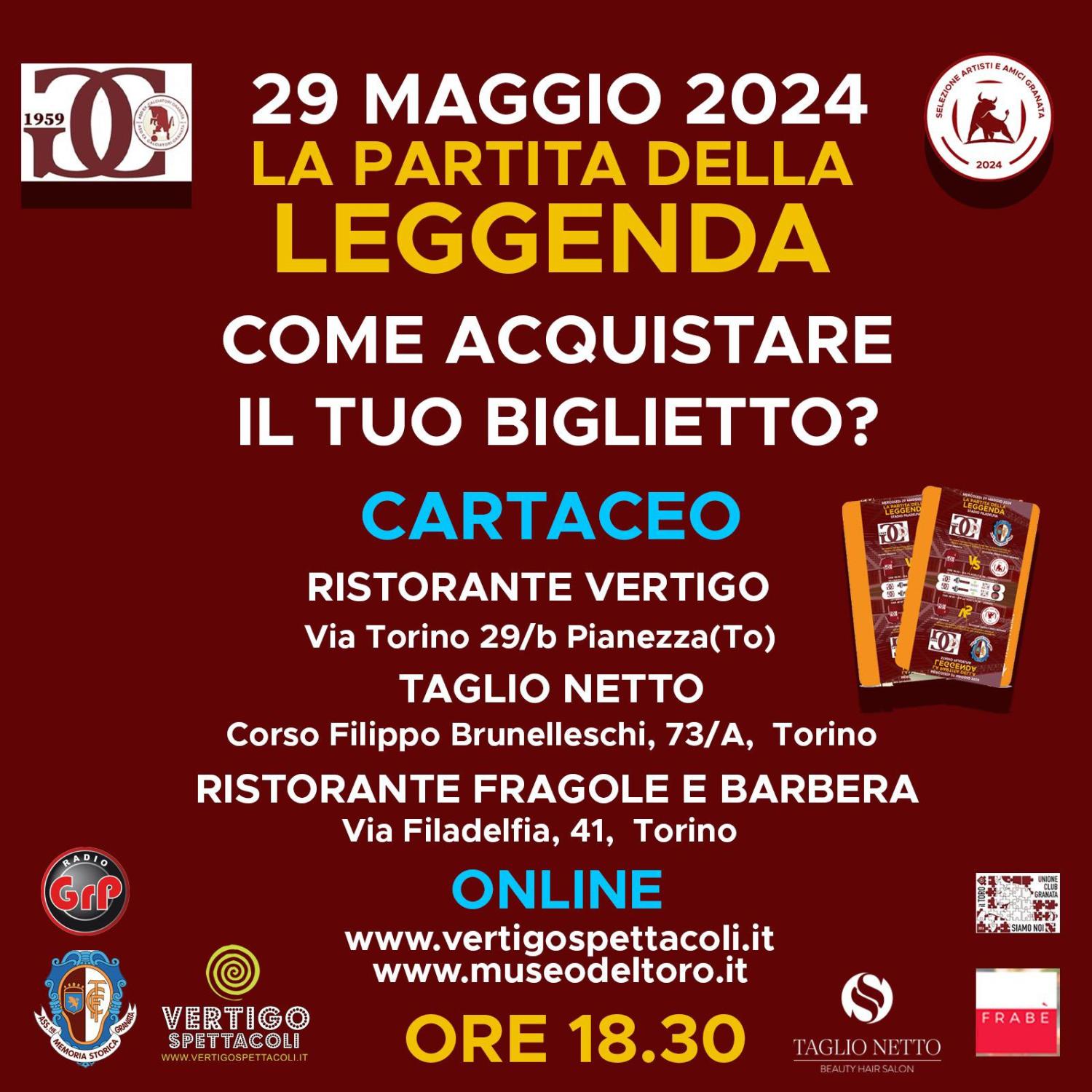 Tutti al Filadelfia mercoledì 29 alle ore 18,30 ci sarà “La Partita della Leggenda” fra Glorie Granata e gli Artisti & Amici Granata che scenderanno in campo per raccogliere fondi destinati alla costruzione dell’edificio del Museo del Grande Torino e della Leggenda Granata al Fila.