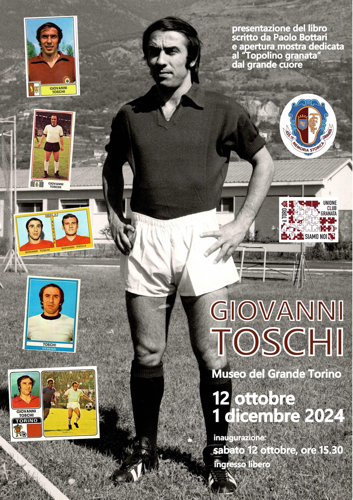 Al Museo del Grande Torino e della Leggenda Granata oggi alle ore 15,30 ci sarà l’inaugurazione, con ingresso libero, della mostra “Giovanni Toschi” che sarà visibile fino a domenica 1 dicembre 2024 nelle sale della Memoria. In occasione dell’inaugurazione della mostra, la prima delle mostre tematiche della stagione 2024-2025, sarà anche presentato il libro dedicato a Toschi scritto da Paolo Bottari alla presenza dell’autore, di Giovanni Toschi e di alcune vecchie glorie, sono attesi fra gli altri Claudio Sala, Zaccarelli, Rampanti, Fossati, Pallavicini, Asta, Benedetti e Carelli.
