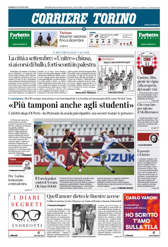Il Corriere di Torino in prima pagina dedica ampio spazio alla prima uscita stagionale del Torino nell'amichevole di ieri contro il Novara, terminata con quattro gol all'attivo con le reti di Zaza, Belotti, Segre ed Edera. "Il Toro fa poker contro il Novara. Ok Zaza-Belotti", è il titolo che si legge in prima pagina.