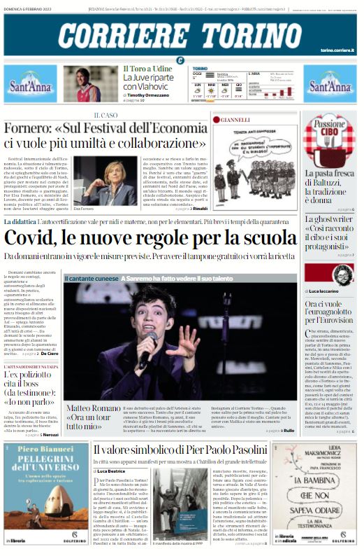 Domenica di campionato per le due torinesi e ovviamente il Corriere di Torino dedica spazio ad entrambe in prima pagina. "La Juve riparte con Vlahovic", titola il quotidiano in taglio alto in vista della sfida di stasera contro l'Hellas Veorna. "Il Toro a Udine", si legge invece in merito alla partita dei granata.