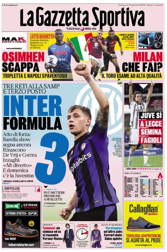 "Milan, che fai?": è il titolo della prima pagina odierna de la Gazzetta dello Sport in taglio alto. Sulla rosea si legge che sarà "un esame ad alta qualità" quello di questa sera contro il Torino per la squadra di Pioli.