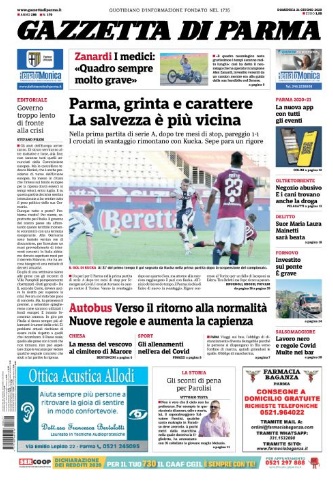 Pareggio esterno ieri per il Parma. La formazione di Roberto D'Aversa si è divisa la posta in palio insieme al Torino nel match che ha segnato il ritorno ufficiale della Serie A. I granata si sono portati in vantaggio con Nkoulou ma alla mezzora del primo tempo Kucka ha fissato il punteggio sull'1-1. Questo il titolo in prima pagina dell'edizione odierna della Gazzetta di Parma: "Parma, grinta e carattere. La salvezza è più vicina".
