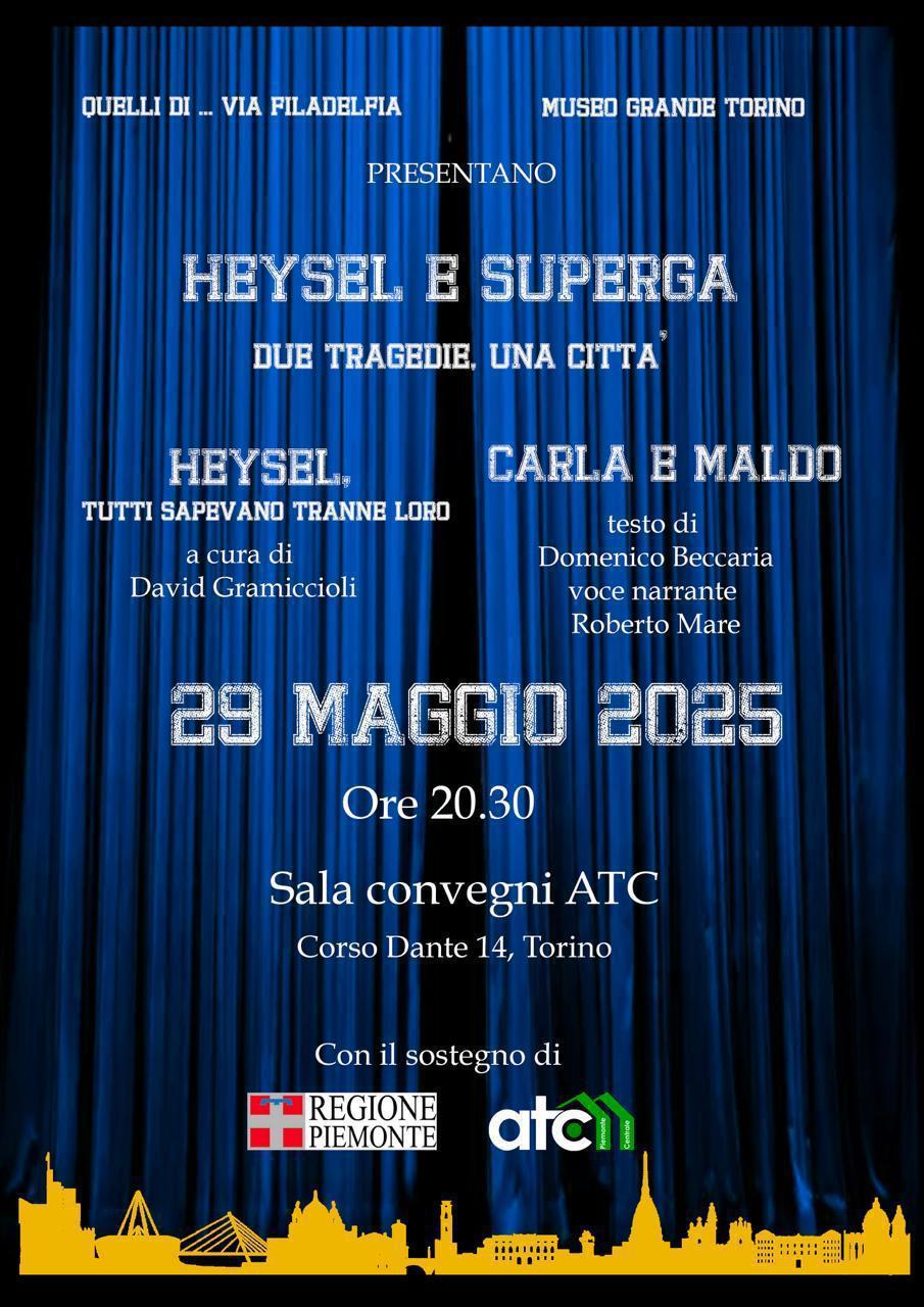 Per onorare tutte le 70 vittime quelli di via … Filadelfia e il Museo del Grande Torino e della Leggenda Granata il prossimo 29 maggio alle ore 20,30 presso la Sala Convegni di ATC in Corso Dante 14 a Torino saranno presentati due monologhi, uno bianconero ed uno, inedito, granata.