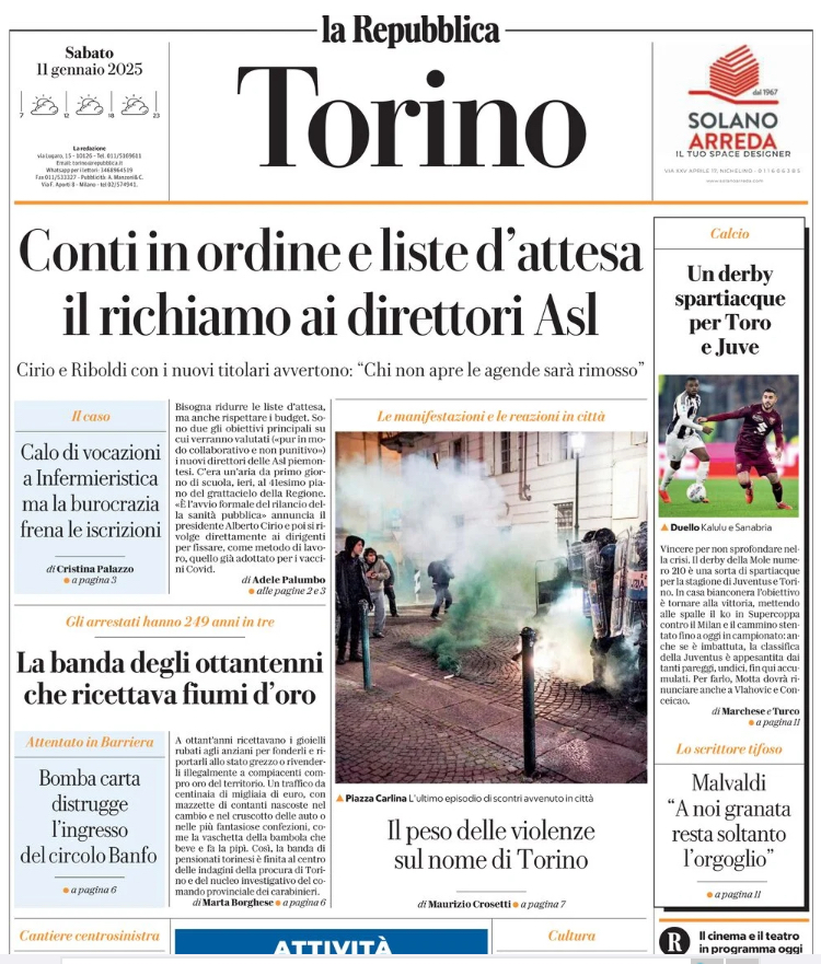 La Repubblica ed. Torino: “Un derby spartiacque per Toro e Juve”