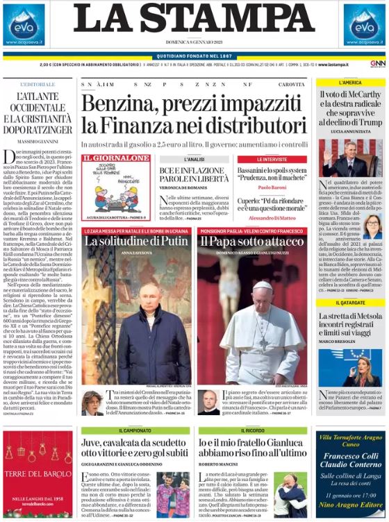 Non solo spazio all'ottava vittoria di fila della Juventus in campionato e alla partita di oggi all’ora di pranzo del Torino con la Salernitana, La Stampa dedica la sua attenzione anche al ricordo di Roberto Mancini dopo la scomparsa di Gianluca Vialli: "Io e il mio fratello Gianluca abbiamo riso fino all'ultimo".
