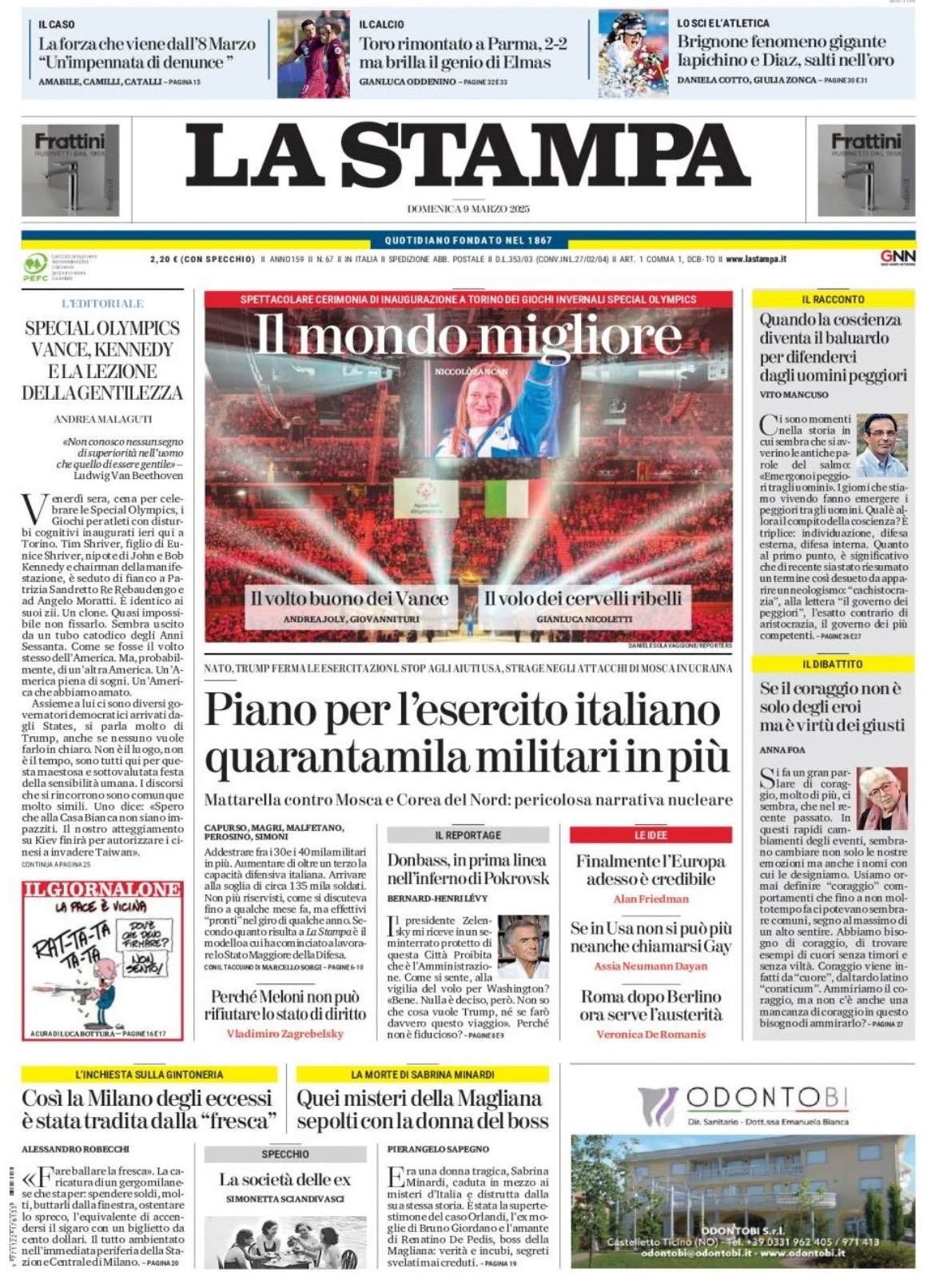 La prima pagina de La Stampa