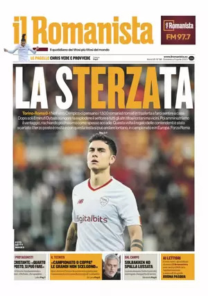 Allo stadio Olimpico Grande Torino, spinta da 1500 tifosi giallorossi, la Roma batte il Torino per 0-1. Decisivo l'immediato vantaggio firmato da Dybala su rigore, poi quasi zero rischi e alla fine una vittoria che vale il terzo posto in classifica. Per questo, oggi Il Romanista apre così: "La sterzata".