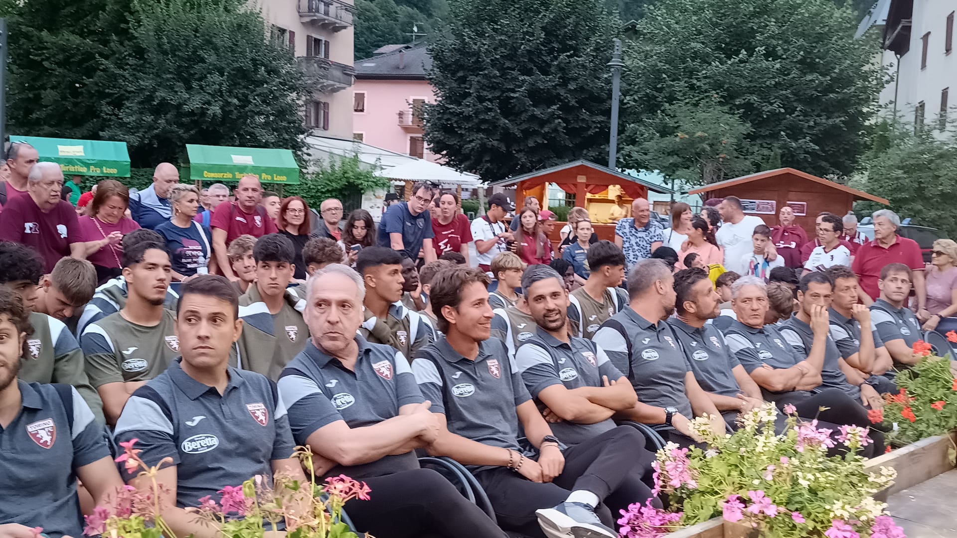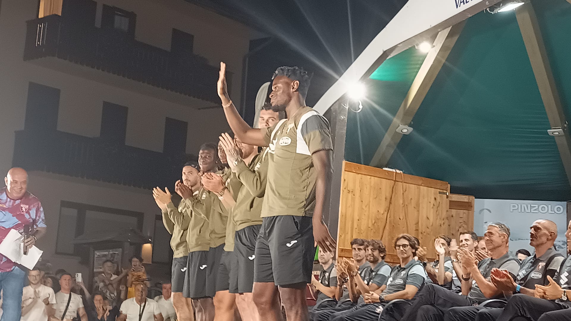 È la serata di presentazione del Torino 2024-2025, che si svolge questa sera a Pinzolo, dove i granata stanno svolgendo la prima parte del ritiro precampionato. Due i volti nuovi arrivati finora dal mercato, il difensore Saul Coco e l'attaccante Che Adams. Sono circa 300 le persone presenti alla presentazione della squadra granata.