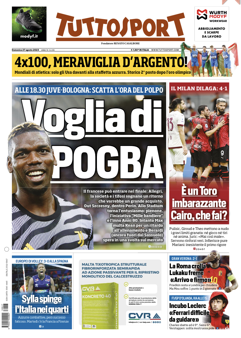Pulisic, Giroud (doppietta) e Theo mettono a nudo i gravi limiti dei granata: né gioco né tiri né anima. Juric: “Mai così male”. Servono rinforzi veri. Infierisce pure Mariani inesistente il primo rigore. E il quotidiano Tuttosport in prima pagina titola: “E’ un Toro imbarazzante Cairo, che fai?”