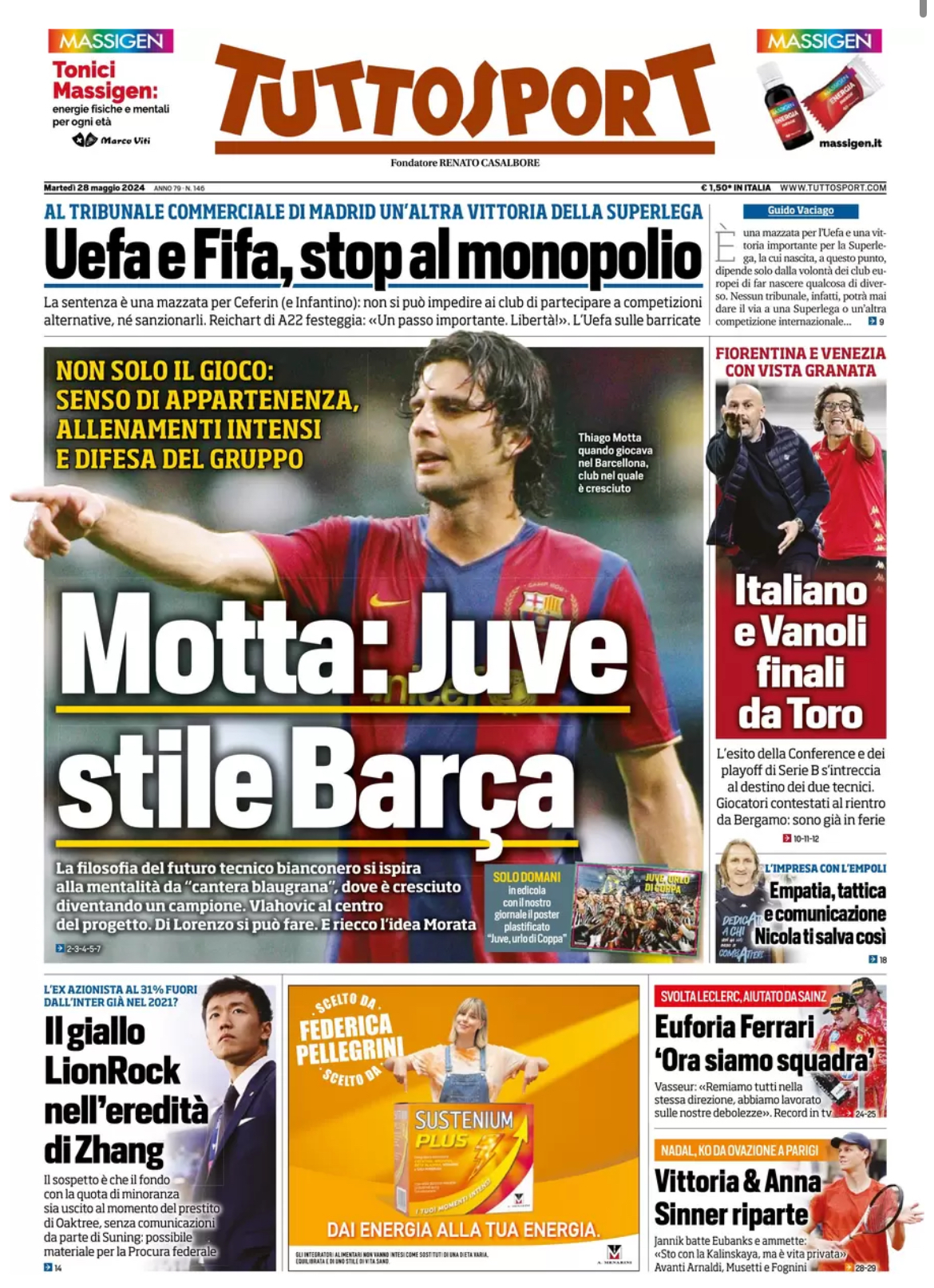 Fiorentina e Venezia con vista granata. L’esito della Conference e dei playoff di Serie B s’intreccia al destino dei due tecnici Italiano e Vanoli candidati, più di chiunque altro, a sostituire Juric sulla panchina del Torino. Dopo la finale di Conference altri tentativi del club granata per Italiano, che però è in pole a Bologna. In assenza di sorprese, nella prossima settimana trattative finali per il tecnico del Venezia per il quale è pronto un biennale. E il quotidiano Tuttosport in prima pagina titola: “Italiano e Vanoli finali da Toro”.