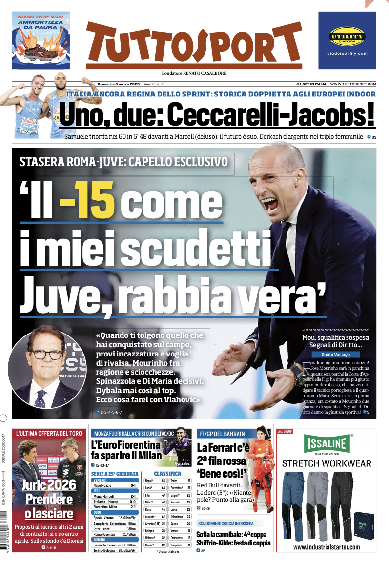 L’ultima offerta del Torino a Juric: proposti altri due anni di contratto. Si o no entro aprile. Sullo sfondo c’è Dionisi. E il quotidiano Tuttosport in prima pagina titola: “Juric 2026: prendere o lasciare”. Cairo e Vaganti sono passati da uno a due anni in più e un ingaggio aumentato del 15% che passerebbe da 2 a 2,3 milioni di euro a stagione sempre più bonus. Seguito pure Zanetti, per cautela. Ora sta a Juric? No, a Cairo: dipende dai progetti.