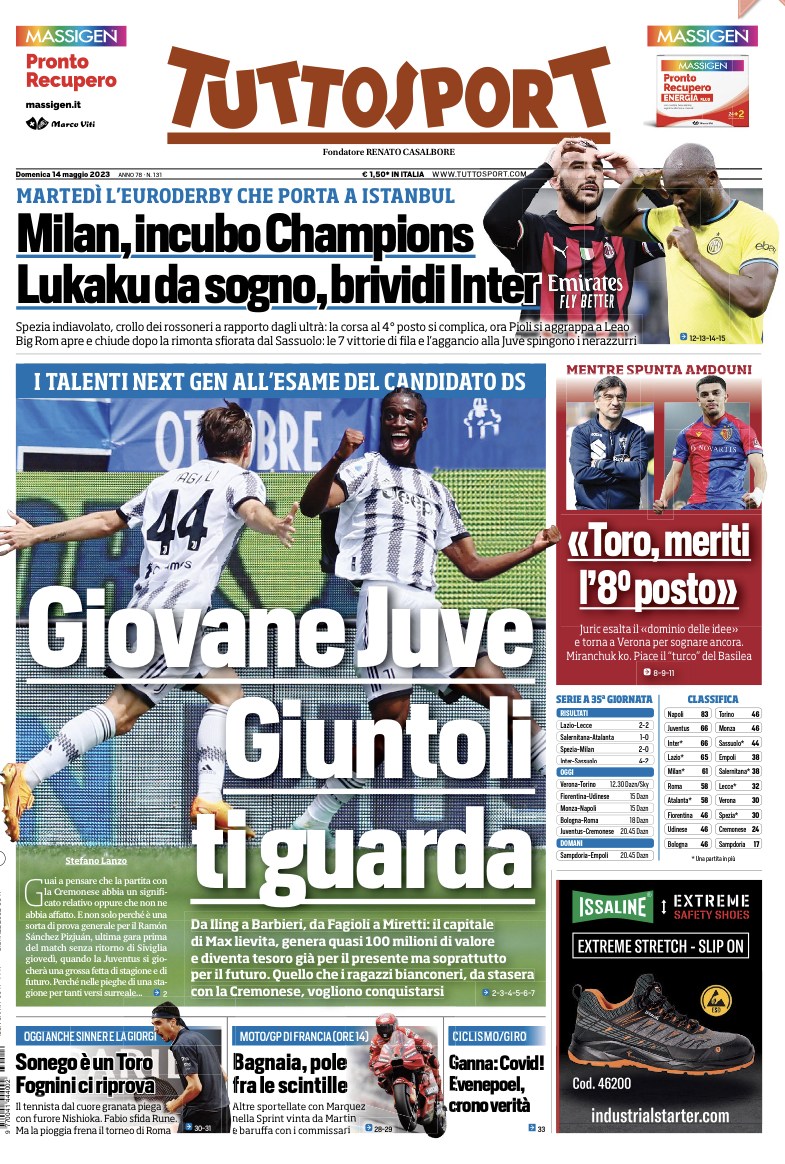 Juric alla vigilia della partita con l’Hellas ha esaltato “il dominio delle idee”e torna a Verona per sognare ancora un piazzamento utile per riportare il Torino in Europa. Miranchuk però è ko a causa della rottura del mignolo del piede. E il quotidiano Tuttosport in prima pagina titola: “Juric: «Toro, meriti l’8° posto»”.