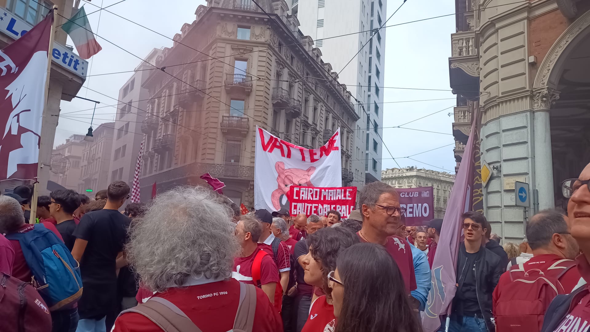 "Il Toro siamo noi" e decine di striscioni con un unico tema: "Cairo vattene": sono questi gli elementi salienti della nuova marcia granata a 22 anni di distanza dalla prima. Allora il presidente e la proprietà erano diverse, ma la sostanza non è cambiata. Guarda le più belle immagini della mattinata scattate dalla nostra inviata Elena Rossin.