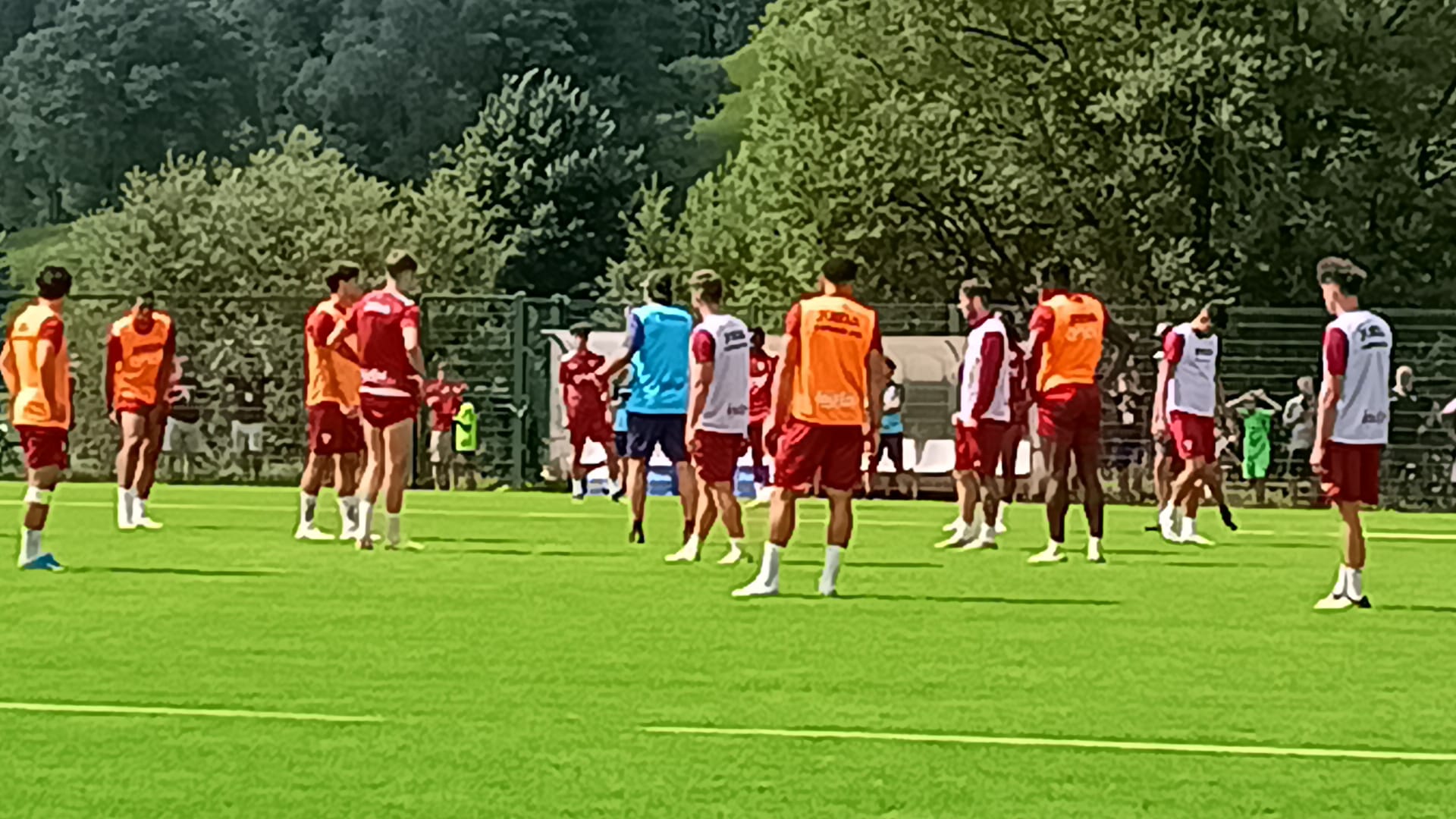 La sessione di lavoro è iniziata con la visione dei filmati e poi tutti in palestra. A parte sempre Gineitis e Savva, che stanno solvendo un programma personalizzato per superare gli acciacchi che hanno avuto nei giorni scorsi. Prima di iniziare le esercitazioni sul campo mister Vanoli si è soffermato a parlare con Lazaro, di tanto in tanto l’allenatore dedica ai singoli giocatori tempo per spiegazioni supplementari. Riscaldamento personalizzato, dopo il lavoro in palestra, per Adams e Pellegri, che poi si sono uniti ai compagni sul campo secondario che nel frattempo si erano cimentati nel torello. La prima esercitazione prevede movimenti della palla con l’utilizzo delle sponde con i giocatori suddivisi in tre squadre formate ognuna da 7 elementi. Adams fa parte della formazione che indossa la pettorina arancione e che è composta da Sazonov, che gli fa da interprete poiché parla perfettamente inglese, Dembele, Ricci, Ilkhan, Bianay Balcot e Zapata. Con la pettorina bianca ci sono Coco, Dellavalle, Bellanova, Horvath, Linetty, Sanabria e Karamoh. In granata Vojvoda, Masina, Lazaro, Tameze, Ilic, Bayeye e Pellegri.