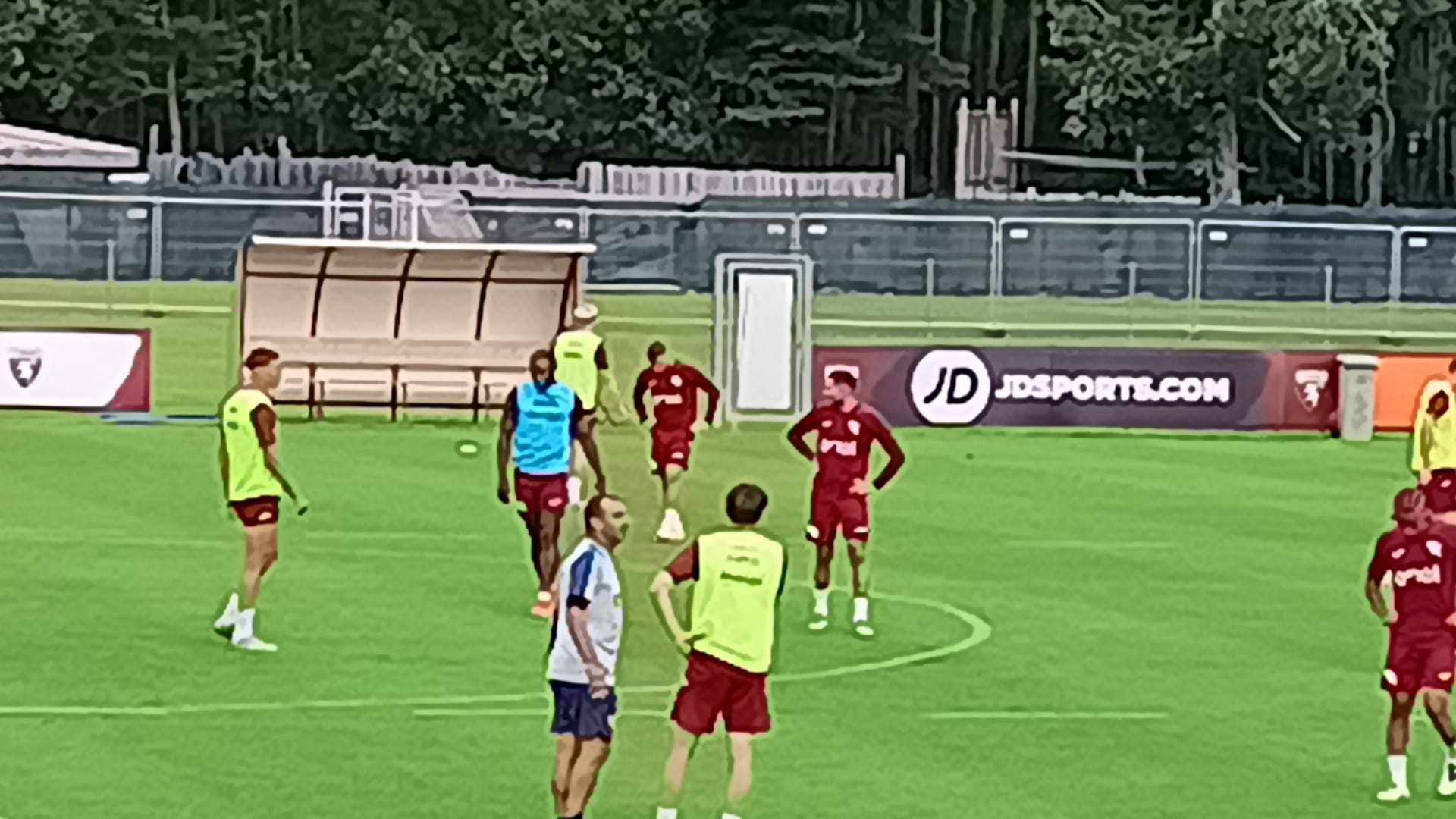 Anjorin non si sta allenando con i compagni e seguendo un lavoro personalizzato. Ad assistere alla sessione di lavoro anche Vagnati e Moretti.