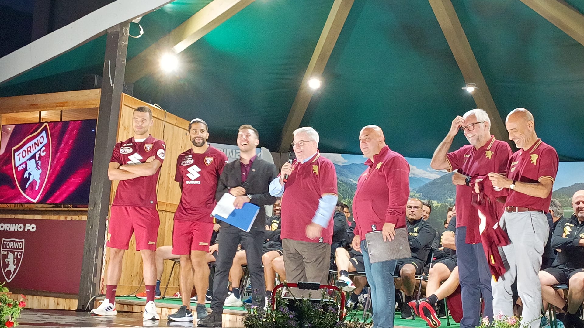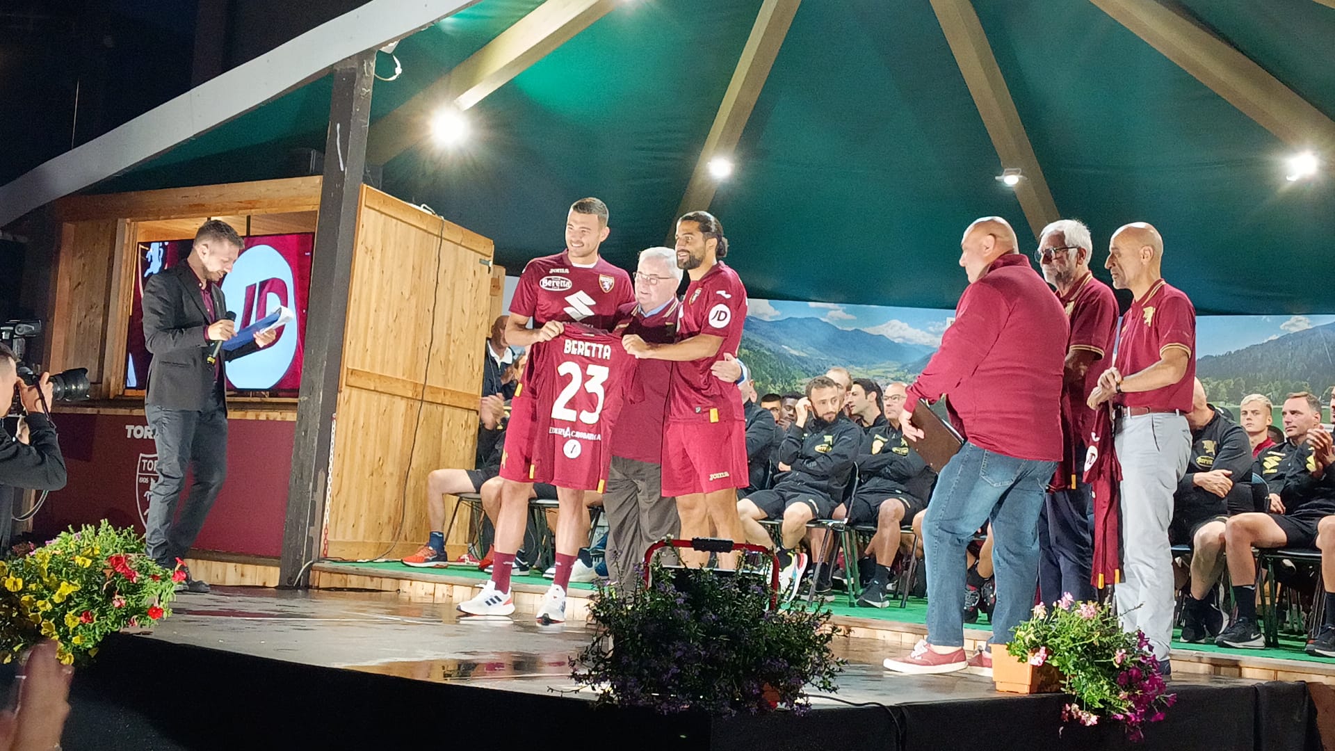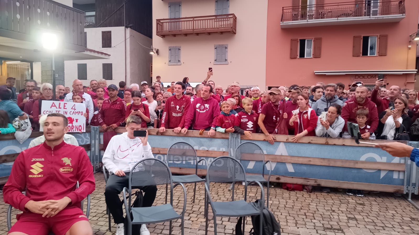 Almeno un migliaio di persone, complice la serata serena a Pinzolo, per la presentazione ufficiale del Torino come ci informa la nostra inviata Elena Rossin. Un evento che servirà anche per presentare la maglia ufficiale Home della stagione 2023/204. Presenti anche in rappresentanza del club Davide Vagnati, Emiliano Moretti e Alberto Barile.