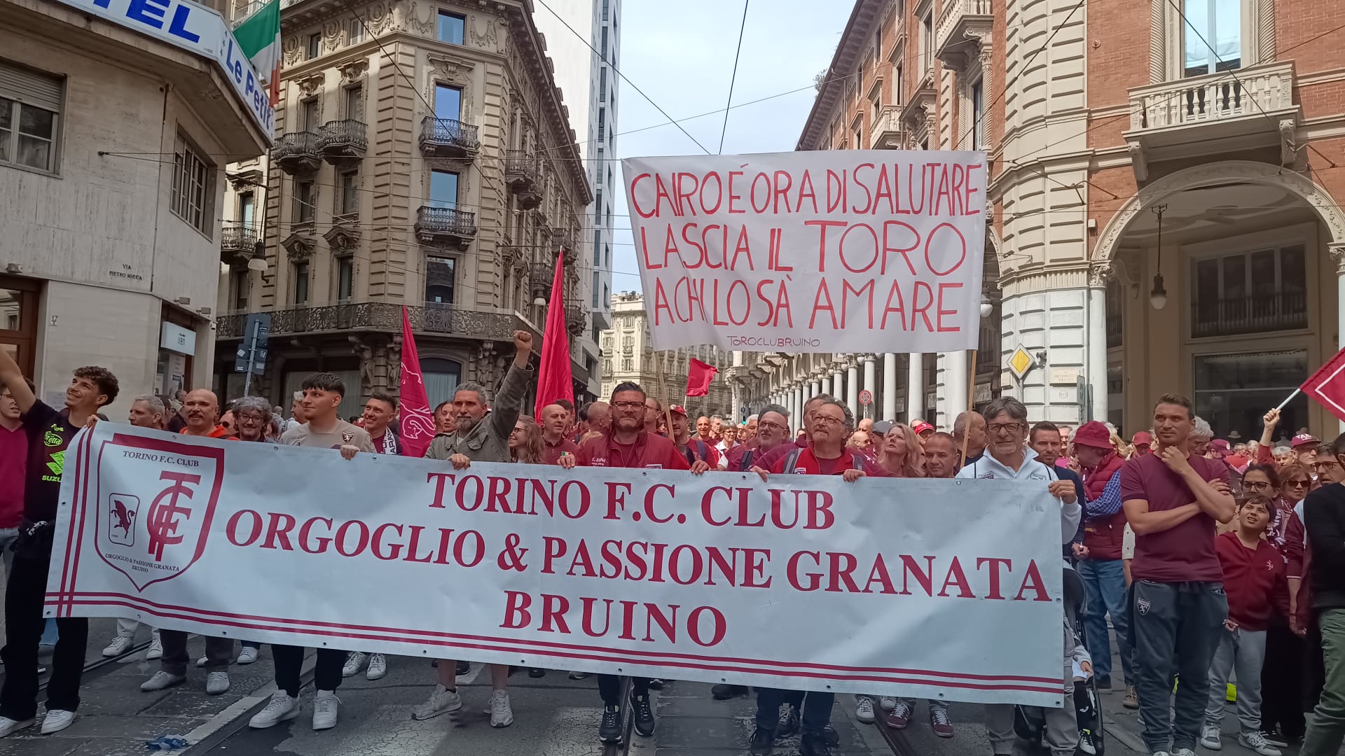 Come era facile immaginare, sono già migliaia i tifosi del Toro davanti al Bar Norman, in via Pietroi Micca e in piazza Solferino, pronti per partire: è il giorno del Grande Torino ma anche quello della Marcia granata che raggiungerà attorno alle 13 il piazzale di Sassi per salire a Superga. E le immagini della nostra inviata Elena Rossin testimoniano con dovizia quello che sta succedendo. All'appello hanno risposto più di 20mila persone. In prima fila, come aveva promesso, c'è anche Pasquale Bruno: "Quando entravamo in campo pensavamo a voi", ha detto ai tifosi che lo circondavano affettuosamente. Alle 11:15 il corteo è finalmente partito in direzione Sassi.